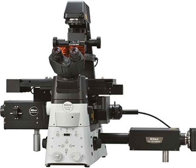 Multiphoton and confocal microscope system for high speed, high resolution and high sensitivity multiphoton excitation and confocal fluorescence imaging.
